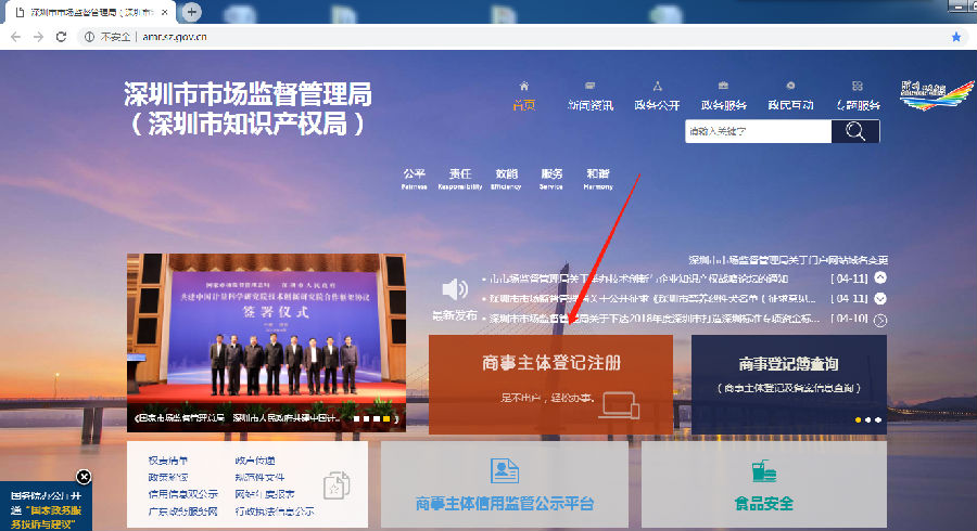 首先登陸深圳市市場監(jiān)督管理局官網(wǎng)點(diǎn)擊商事主體登記注冊